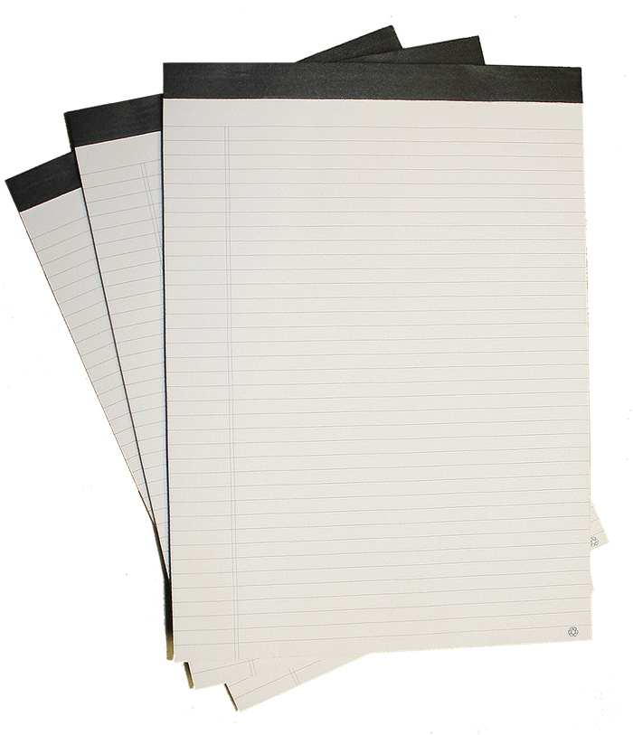 We manufacture custom legal pads and letter pads, with a variety of personalized options. We offer traditional ruled yellow letter pads, recycled journals, junior ruled pads and legal-size pads in colored shades. Personalized leather legal pads, padfolios, portfolios and imitation vinyl pad holders are also available. You may customize your pads by imprinting your logo on each sheet of paper, adding a custom protective cover and foil stamping, or printing the tape binding. Your logo may be printed in 1, 2 or 3 colors, or 4-color process. Our standard ruled pads have a micro-laser perforation for a nice clean easy tear. We also offer 3-hole punched or drilled paper as well as 2-hole litigation-style pads. Adding a protective cover is a terrific way to decorate and enhance your legal pads, and we offer various colors for cover materials and imprints. Mini notepads are available in an endless range of sizes such as 3 x 5, 4 x 6 or 5 x 8. We specialize in mini note pad refills as well as the standard ruled letter-size pads, and we offer corporate discounts on all our products . Colored legal pad paper is also available. For leather legal pad holders visit at Leather and Vinyl Direct for wholesale pricing. For custom notepads and memo pads visit usapad.com.